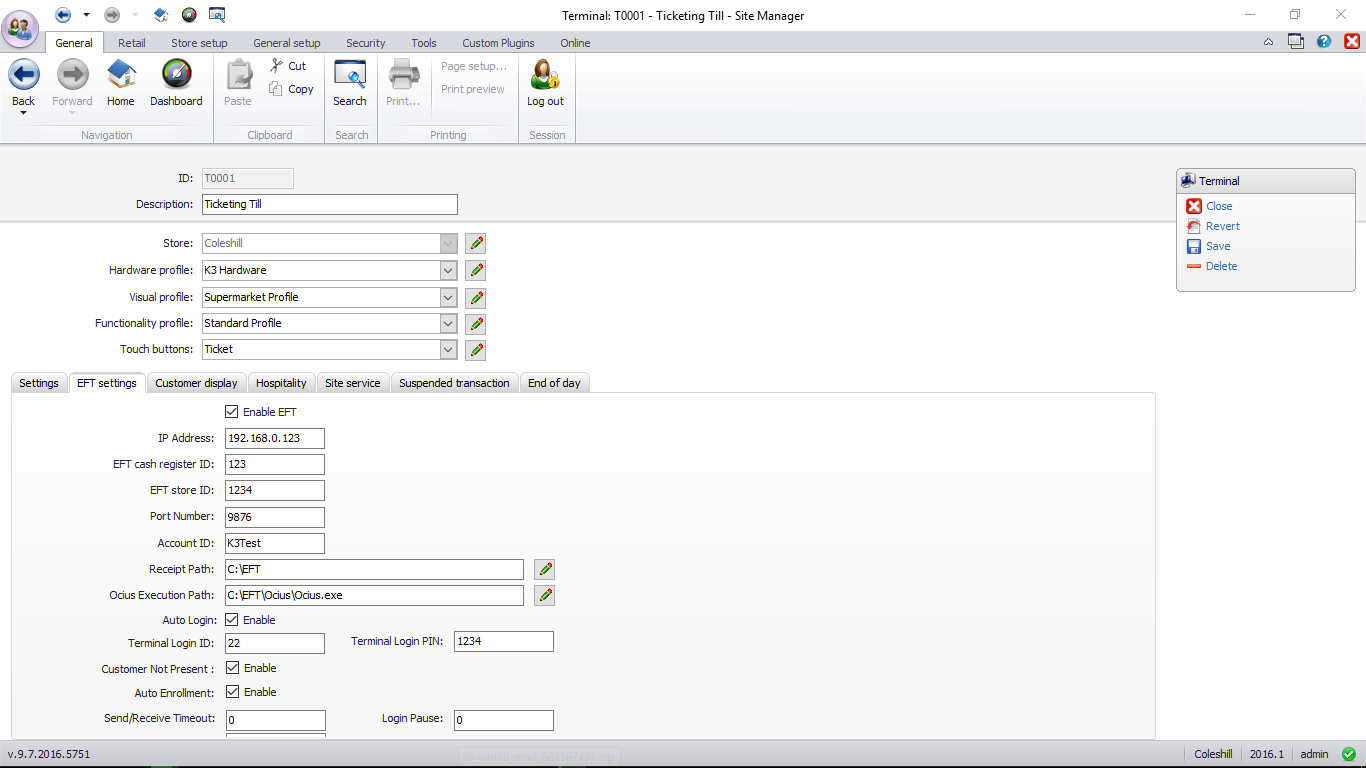 Site Manager plugin and POS EFT Service to use Verifone terminals powered by Ocius Sentinel for UK EFT.