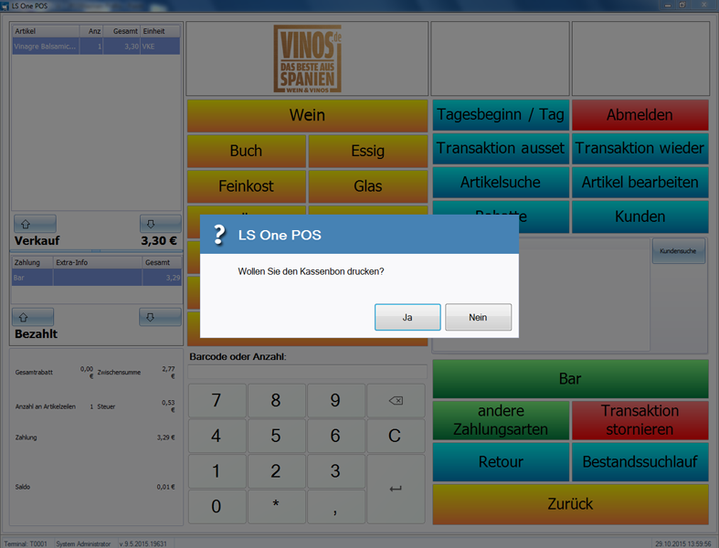 EC Cash module to connect you EC Cash device with the LS One POS System. Individuell modifications possible. Installation and configuration are calculated by the needed time.
